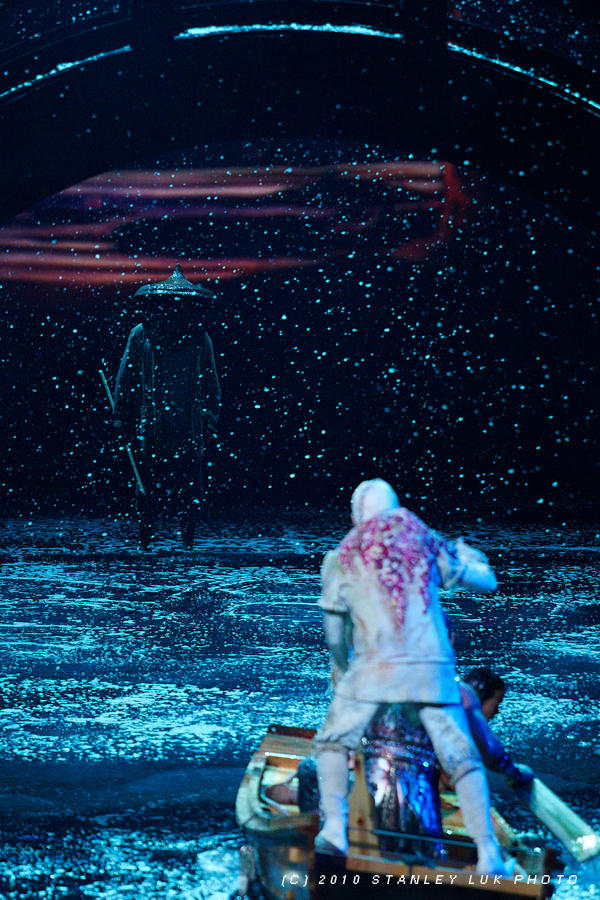 The ticket prices aren’t exactly inexpensive to Hong Kong’s standards. However, unlike the Zaia show across the street, while exiting the theatre I overheard a number of fellow audience members exclaiming that this new Dancing Water show is “definitely worth every penny”. It is by no means a modest compliment since Hong Kong people are known to be spoiled. It just seems like nothing can excite us anymore. The two shows really can’t be directly compared this way. One is slightly geared towards European taste while the newest Franco Dragone’s show incorporates more Chinese elements, and he frankly admitted that he has taken advantage of Zaia’s “failures” while planning this number. Asians in general feel that they better be excited paying a hundred US dollars per person for a show, and Franco gives them non-stop sky diving, motor bike jumping, acrobats and gymnastics. I remember people telling me that Zaia is the most boring circus show they have ever seen. Little do they know that Cirque du Soleil never proclaims it is a circus performance!